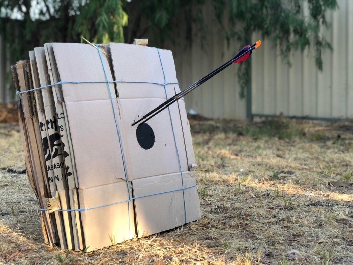 •  Mũi tên được thiết kế để bắn vào mục tiêu mềm, bạn có thể làm bia và vùng đệm bằng foam, cao su, giấy cactong, vỏ gỗ bào, bao tải đất, rơm …