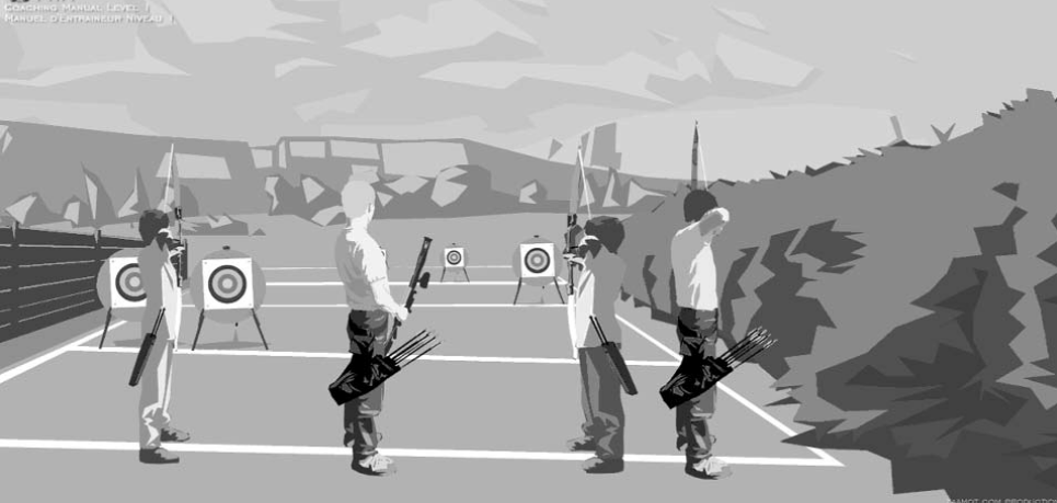 • Người mới tập nên bắn bia thấp để nếu mũi tên không trúng đích thì nó có xu hướng cắm xuống đất. Như vậy an toàn hơn là bắn bia cao, có thể mũi tên bay quá cao ra ngoài phạm vi an toàn.